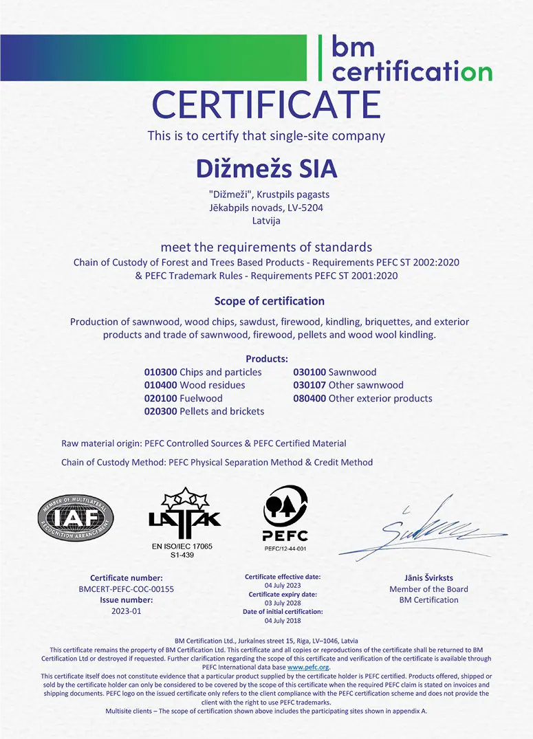 Dižmežs ir uzņēmums, kas ražo un piegādā augstākās kvalitātes cieto kurināmo, nodrošinot klientiem stabilu siltuma risinājumu ar prognozējamu servisu un precīzu loģistiku. Mūsu ikdienas darbs balstās kvalitātes kontrolē un sakārtotā procesā — no izejvielu iepirkuma un sagatavošanas līdz piegādei klientam. Paralēli kurināmā ražošanai nodarbojamies arī ar mežu un kokmateriālu iepirkšanu, tādējādi uzturot drošu izejvielu bāzi un ilgtermiņa sadarbības attiecības nozarē. Dižmeža komandas stiprā puse ir profesionāla attieksme un laba darba atmosfēra — strādājam ar atbildību, cieņu un kopīgu mērķi nodrošināt klientiem pārliecinošu rezultātu.